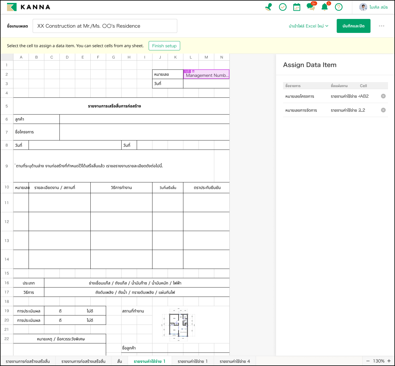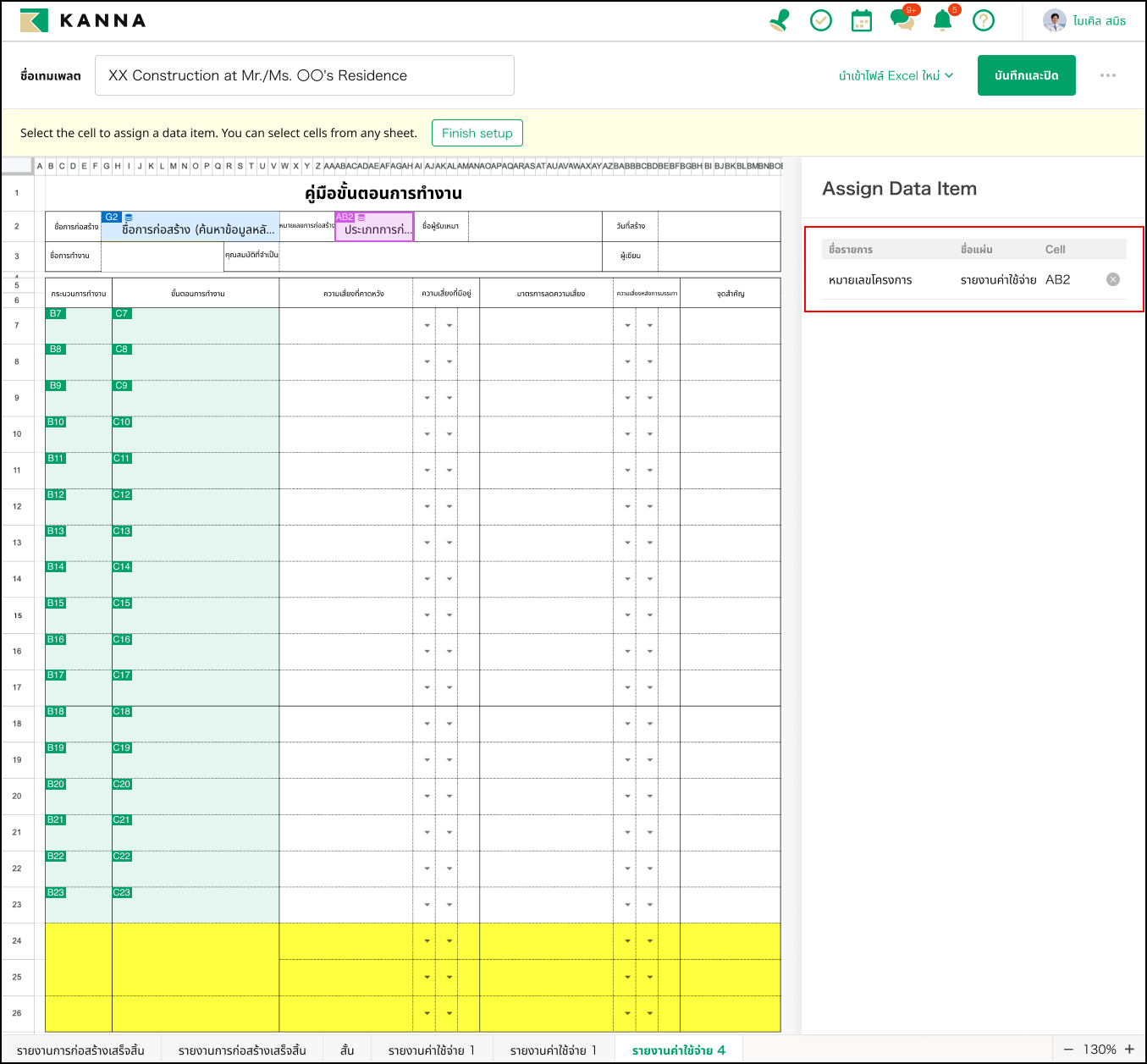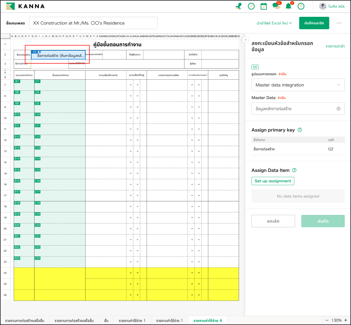 นอกจากนี้ Data item ยังสามารถกำหนดให้กับช่องกรอกข้อมูลในชีตอื่นได้ด้วย