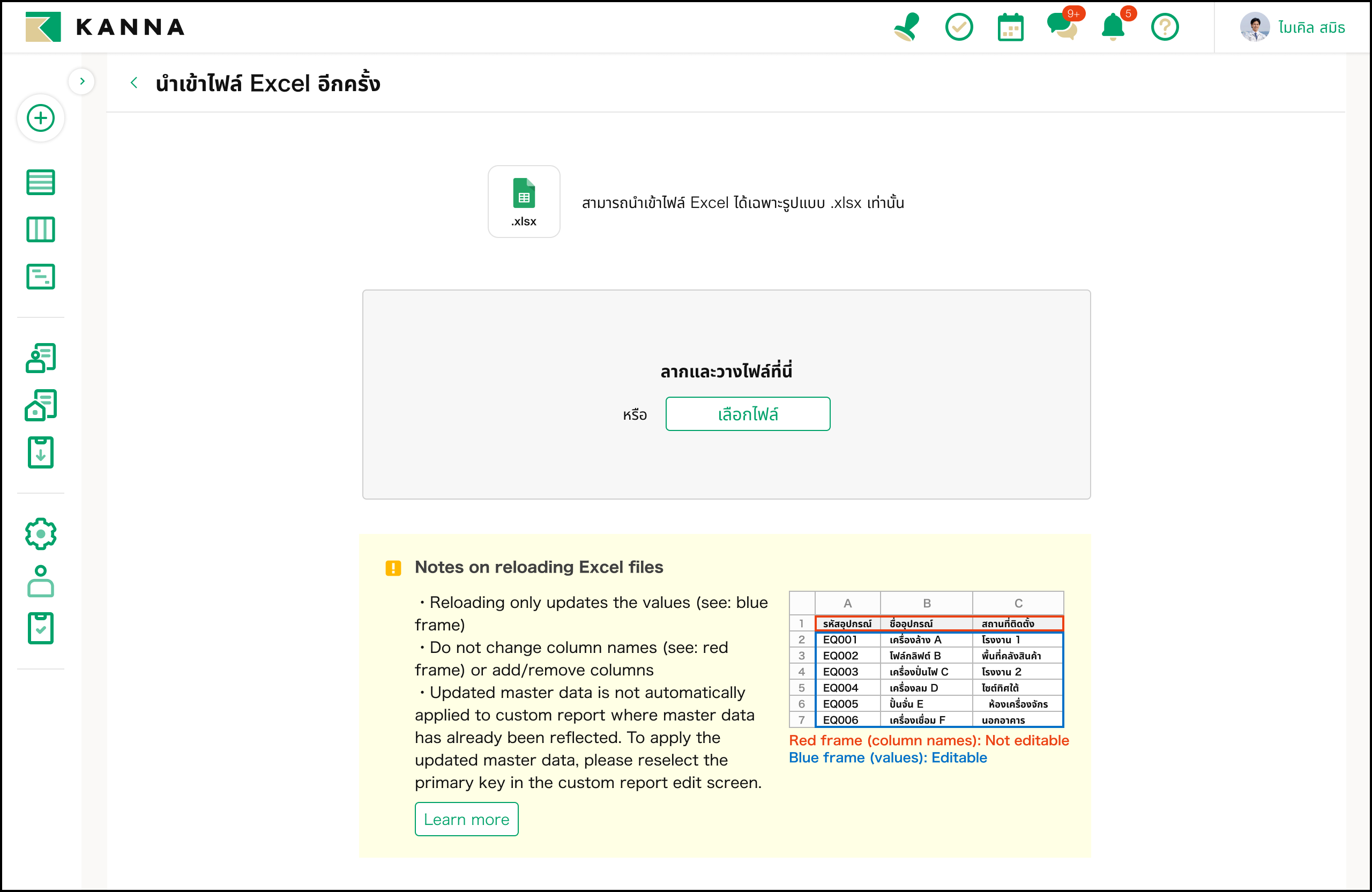 ・รูปแบบไฟล์ต้องเป็น .xlsx (ไฟล์ Excel)