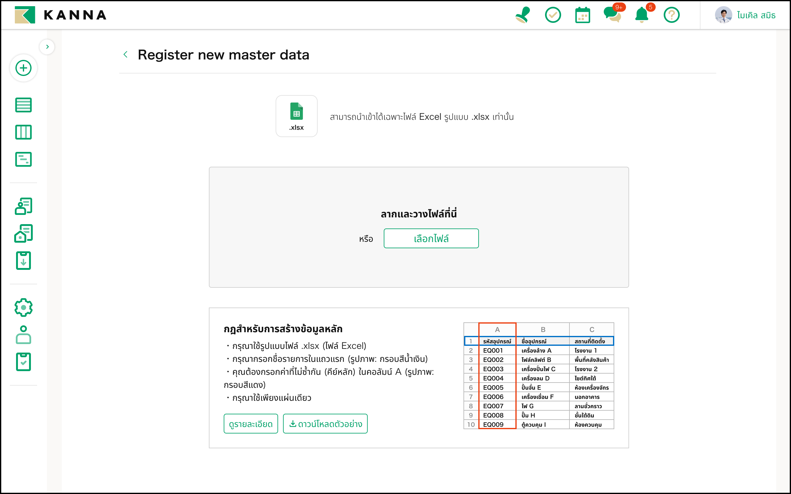 (ไฟล์ที่มีหลายชีตจะไม่สามารถลงทะเบียนได้)