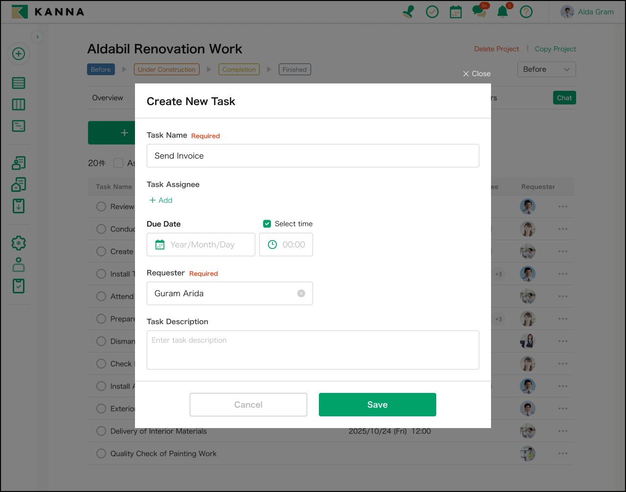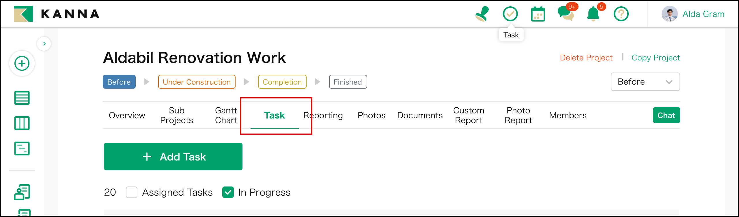 ฟีเจอร์นี้ช่วยให้คุณสามารถลงทะเบียนงาน (Task) ที่เกี่ยวข้องกับแต่ละโครงการได้อย่างละเอียด และจัดการงานเหล่านั้นร่วมกับผู้รับผิดชอบ กำหนดวันครบกำหนด และแนบไฟล์ต่าง ๆ ได้ โดยการติดตามงานที่เสร็จสิ้นและงานที่ยังไม่เสร็จ จะช่วยป้องกันความผิดพลาดและการละเลยงานได้