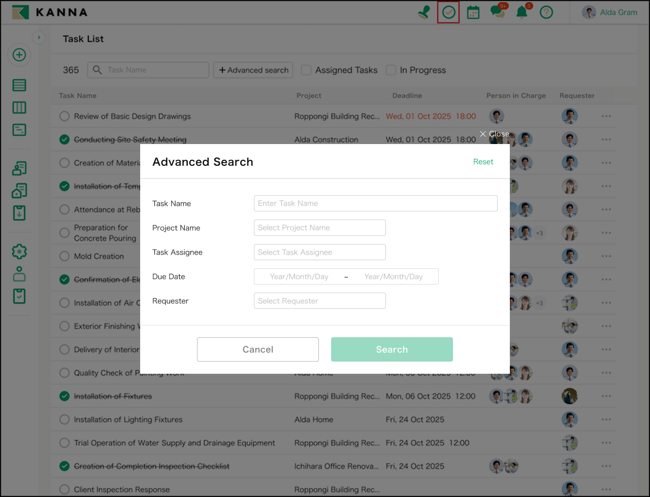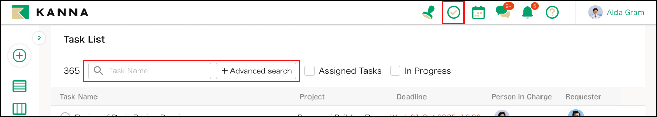 คุณสามารถค้นหางานภายใน รายการงาน (Task List)