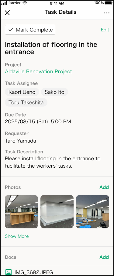 บนหน้าจอ แก้ไขงาน (Task Edit) คุณยังสามารถแนบรูปภาพและเอกสารอ้างอิงได้อีกด้วย