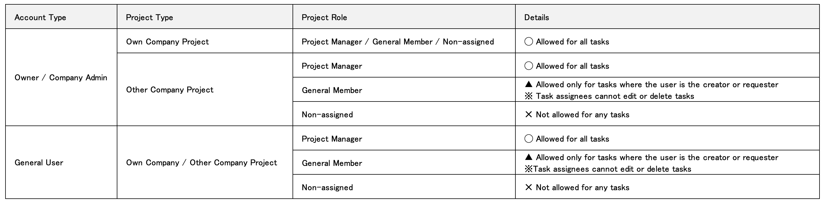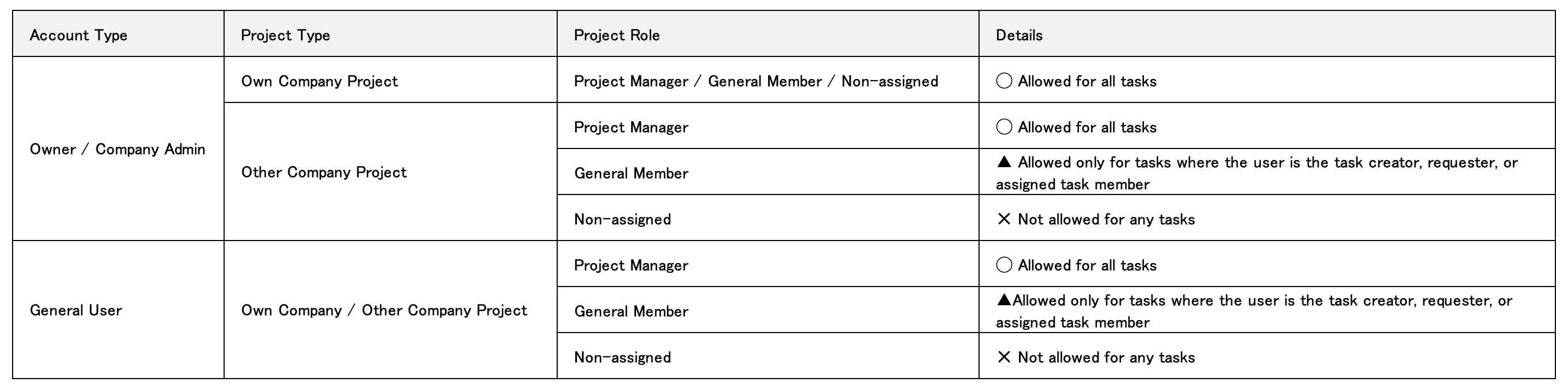 สิทธิ์เหล่านี้จะมอบให้เฉพาะผู้ใช้ที่มีสิทธิ์เข้าดูโครงการที่เกี่ยวข้องเท่านั้น
