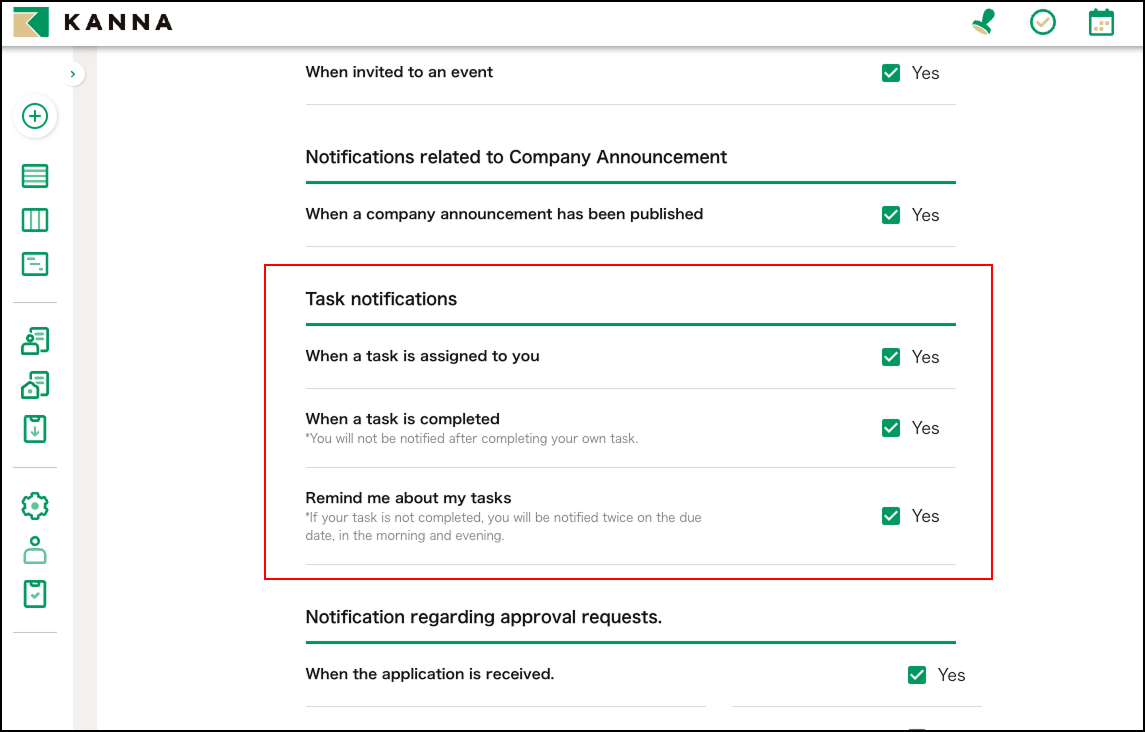 คุณสามารถกำหนดการแจ้งเตือนของงานได้จากหน้าจอ การตั้งค่าการแจ้งเตือน (Notification Settings)