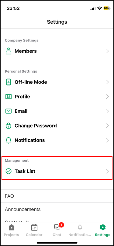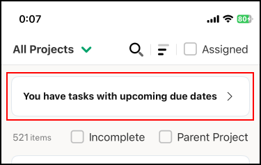 การแตะที่แบนเนอร์จะนำคุณไปยัง รายการงาน (Task List) ซึ่งคุณสามารถดูงานจากหลายโครงการได้