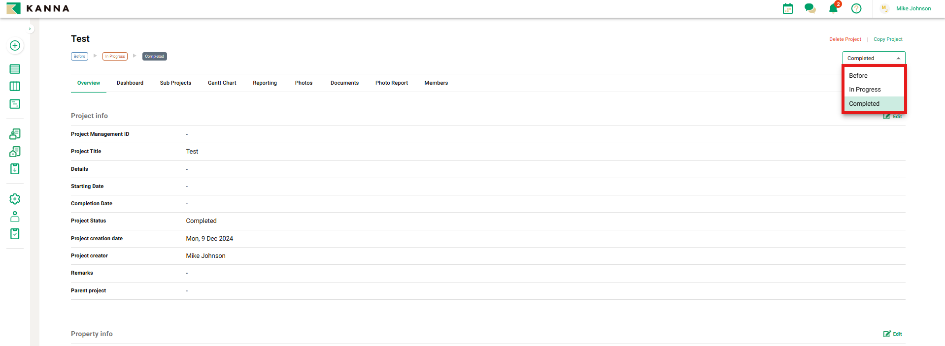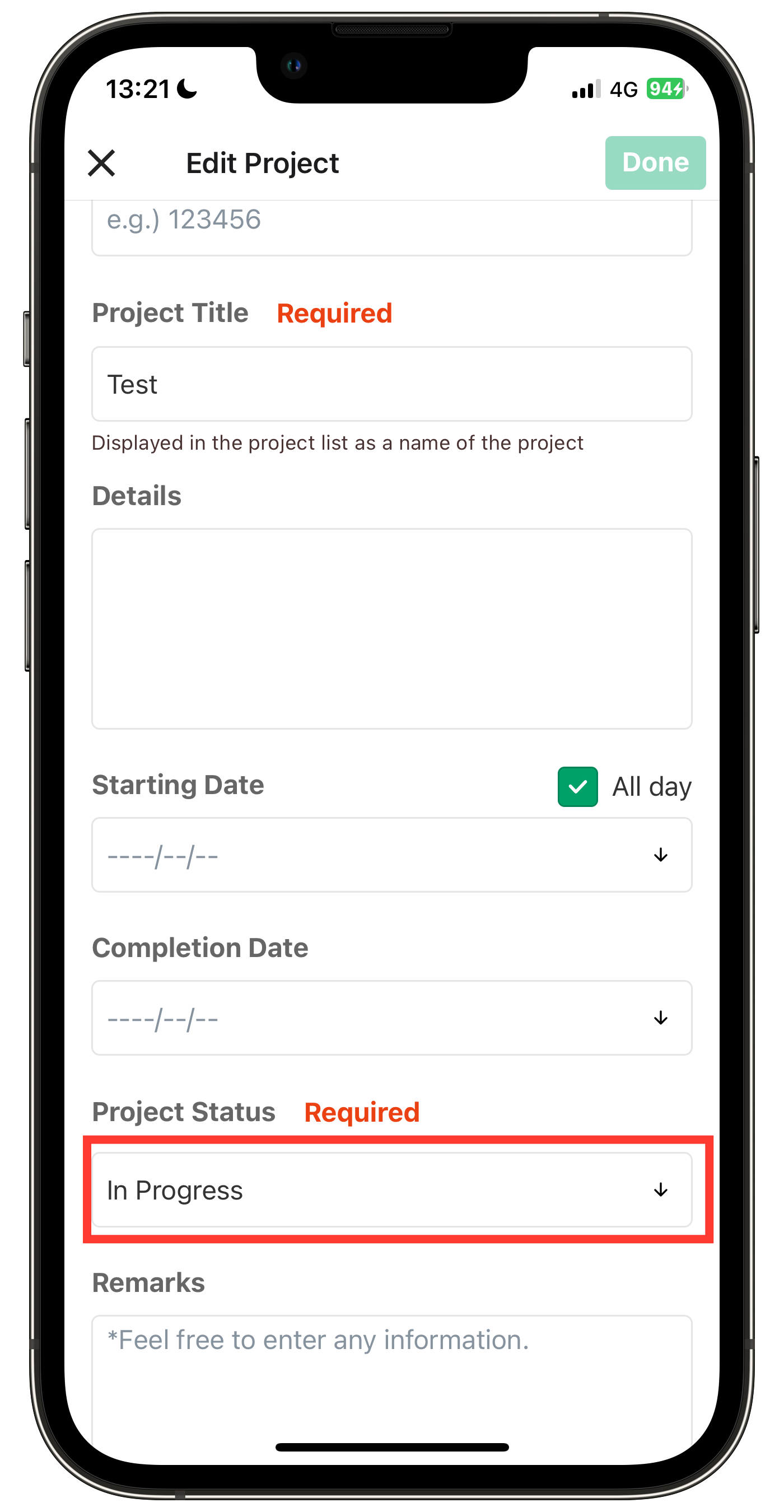 คุณสามารถแสดงและเปลี่ยนสถานะของโปรเจกต์ เช่น "Pre-Construction" หรือ "Under Construction" ได้ โดยการปรับสถานะโปรเจกต์ให้สอดคล้องกับกระบวนการทำงานของบริษัท คุณสามารถติดตามสถานะปัจจุบันและความคืบหน้าของแต่ละโปรเจกต์ได้อย่างมีประสิทธิภาพ