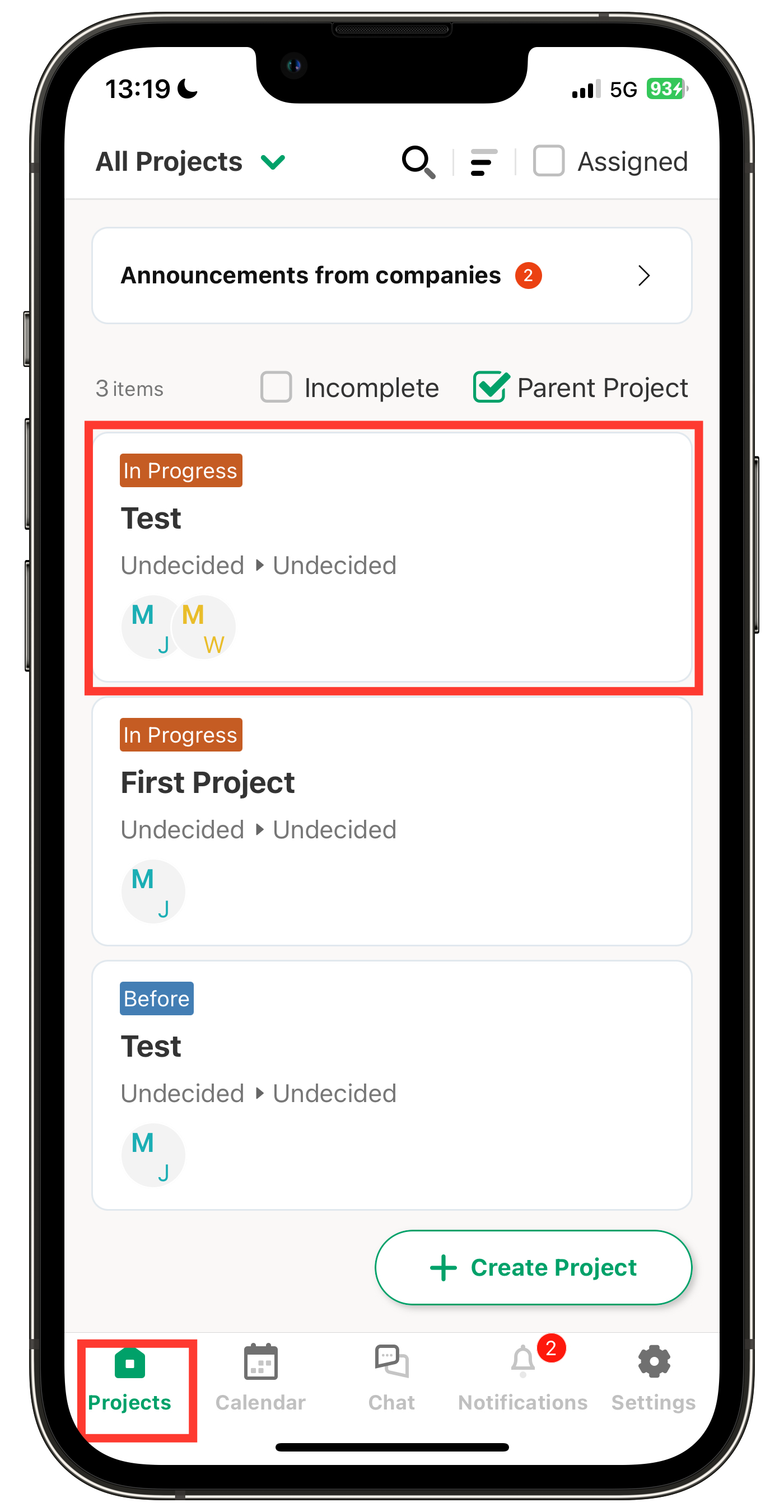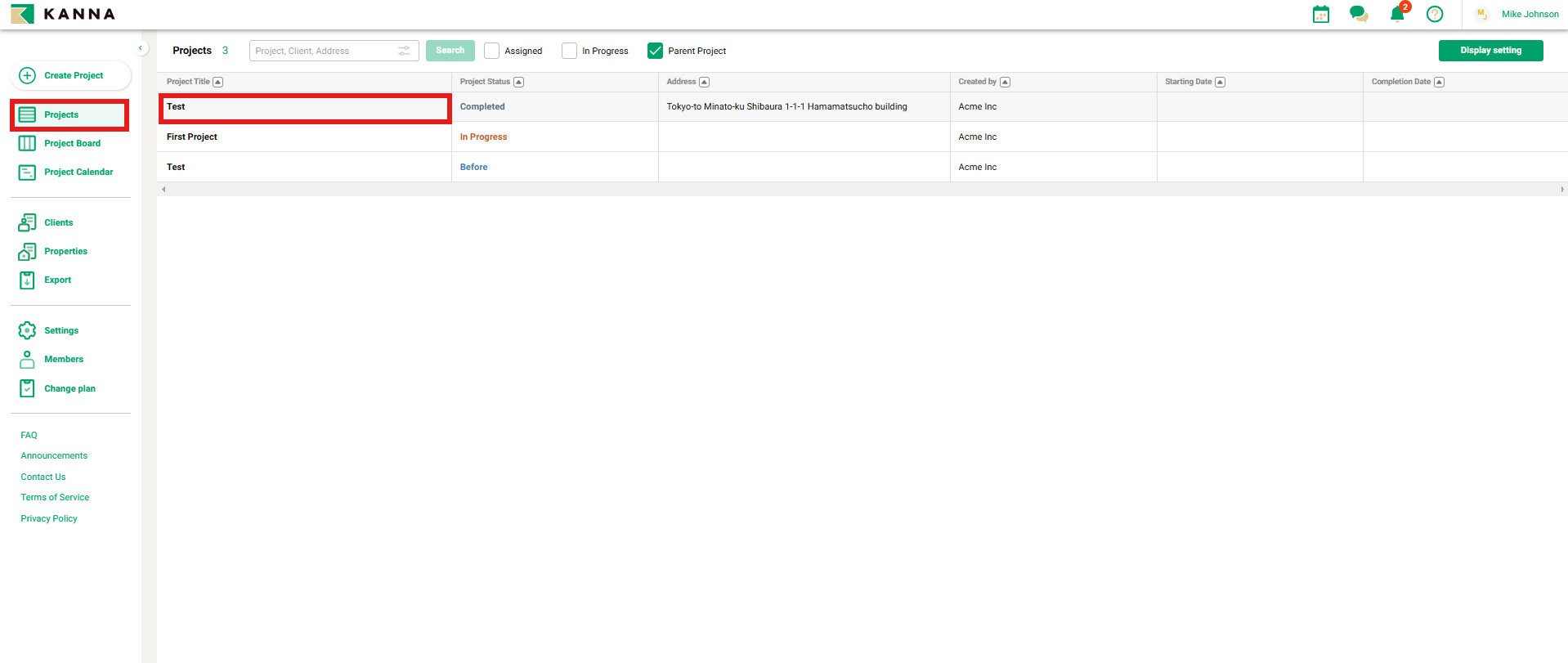 1. เลือกโปรเจกต์ที่ต้องการเปลี่ยนสถานะที่อยู่ในหน้าโปรเจกต์