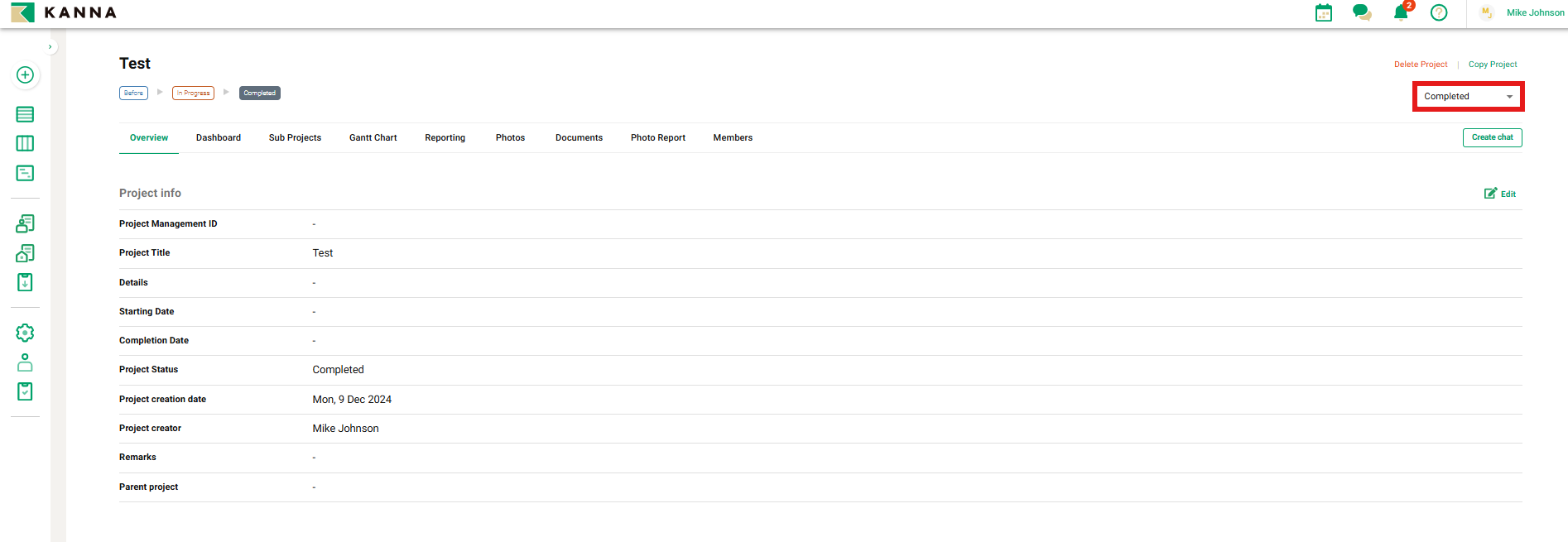 2. คลิกที่ สถานะโปรเจกต์ ที่อยู่มุมบนขวามือ
