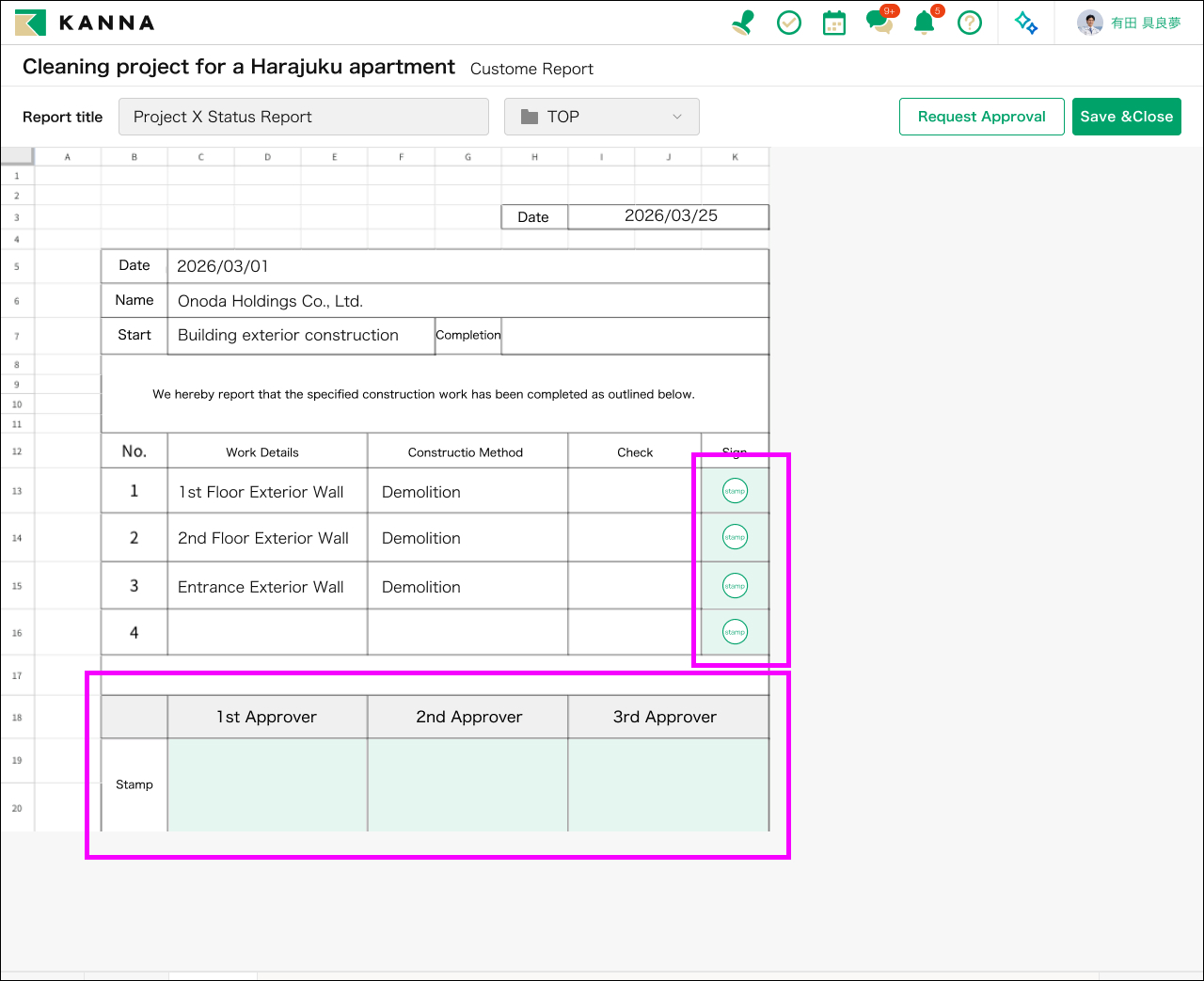 ตัวอย่างเช่น หากเปิดให้แก้ไขเซลล์ที่ต้องใช้ตราประทับหรือลายเซ็นของผู้อนุมัติ ผู้อนุมัติจะสามารถกรอกข้อมูลที่จำเป็นได้ในระหว่างการอนุมัติ